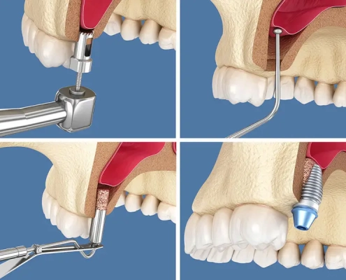 ایمپلنت دندان جایگزین ریشه های دندان می شود. ایمپلنت ها یک پایه قوی برای دندان دائمی (ثابت) یا قابل جابجایی ایجاد می کنند که با دندان های طبیعی شما سازگاری دارند. ایمپلنت دندان از جنس تیتانیوم خالص است که با بدن انسان سازگاری دارد. شکل آن به صورت میله باریکی است که درون استخوان فک قرار داده می شود.